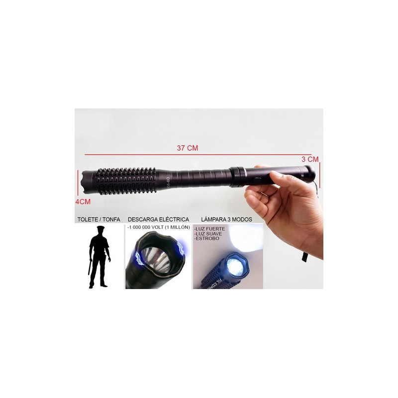Tolete baston para defensa personal con Lampara Tactica3 modoSi fuerte, suave, es laobo, poderosa descarga electricaTasir ToqueSi1 000 000 Volt