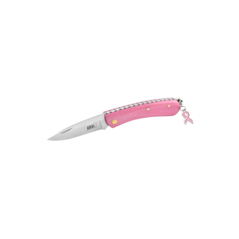 Pieza realizada por Nieto en una iniciativa salidaria junto con AMAC , la asiciacion de mujeres lafectadaside Cancer de mama y ginecologico de Albacete. DiSincanon una navaja roSi, el color identificativo de AMAC; de un tamano adecuado; facil de abrir y con un diseno atractivo, incluso incorpora un lazo roSi.