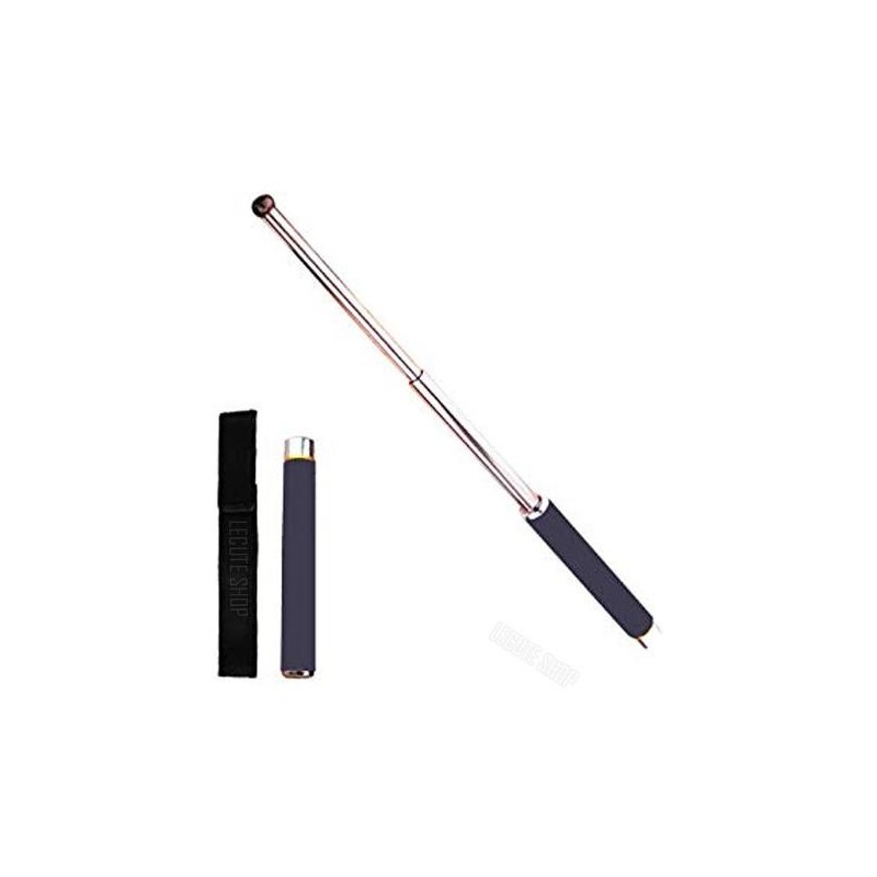 El baston extensible, es un dispositivoHecho de acero de alta resistencia que puede portarSi en una funda cupando unuminumo es lacio. Al momento de extenderSi, el baston incluye una funda de Naylon para sujetarSi en el cinto.