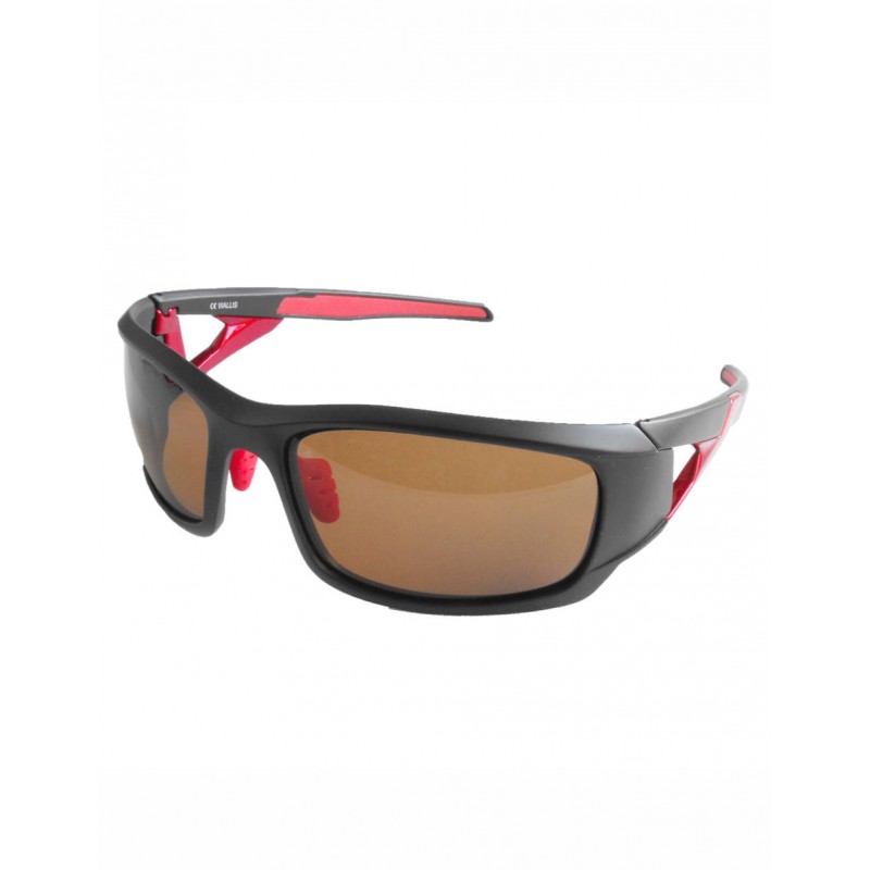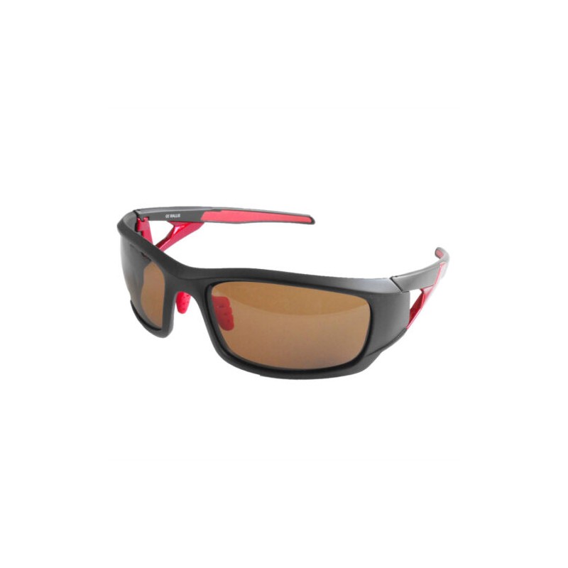 Lentes Deportivo armazon Y Varillas Negro Mate Y Rojo Metalico, Micas Cafe